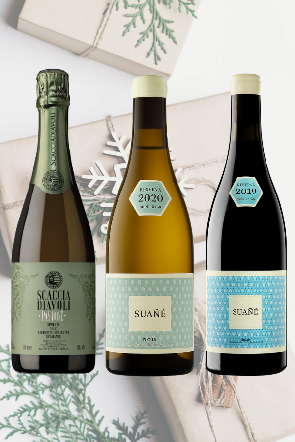 1x Scacciadiavoli - Trebbiano Spoletino Brut Metodo Classico1x Alonso & Pedrajo - Suane Reserva Blanco 20201x Alonso & Pedrajo - Suane Reserva Tinto 2019